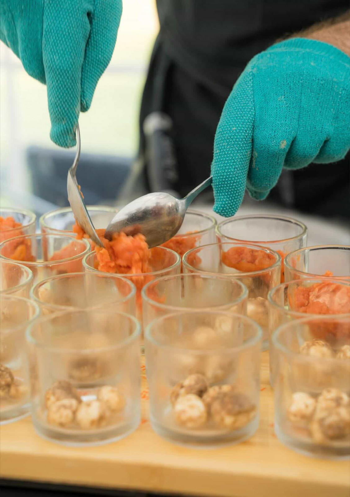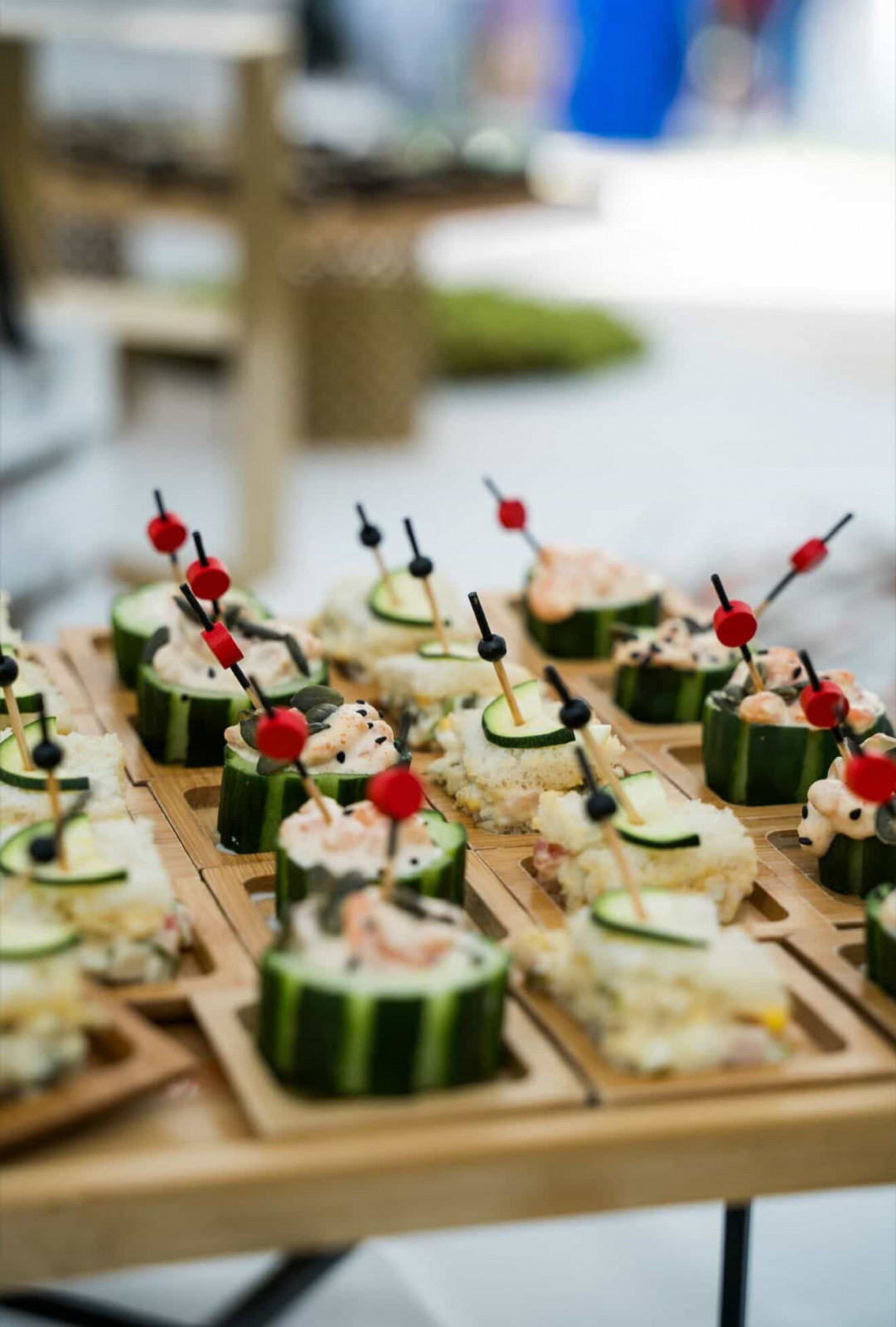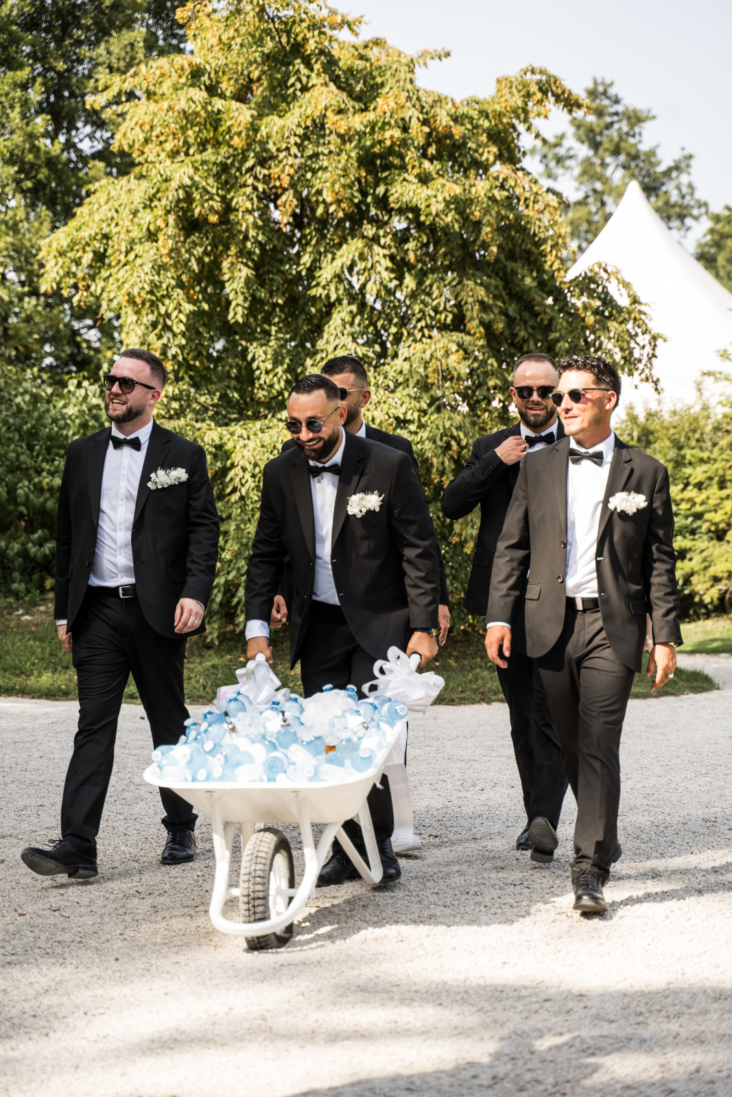 Le vin d’honneur, tout comme le repas était préparé et servi par le traiteur La Palette. Des pièces variées, colorées et excellentes. Avec en plus une animation plancha avec des mini-brochettes cuites à la minute. Et un azote show qui offrait un superbe spectacle mais aussi de succulentes verrines ! Les mariés avaient également opté pour un mur à bulles, que je n’ai malheureusement pas en photo. Un mur végétal, une clochette : on sonne et on nous offre une coupe de Champagne ! Côté déco, pas besoin d’en faire trop car les buffets étaient magnifiques. Nous avons juste ajouté quelques bouquets dans les tons blancs pour apporter une touche fleurie et rappeler le thème. En résumé, un moment convivial, sous le soleil, dont les mariés ont pu profiter pleinement car ils avaient réalisé les photos de groupe en amont.