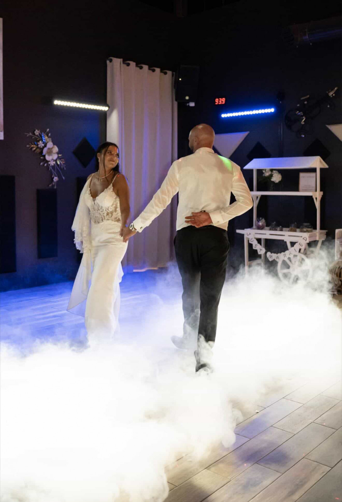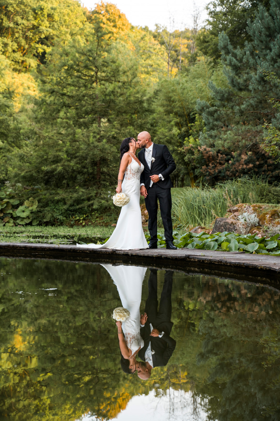 Lors de votre mariage au Moulin de la Mangue, en Haute-Saône, vous avez l’embarras du choix pour vos photos à deux. La roseraie, le parc, le ponton sur l’étang, des coins d’herbe ou de forêt, tout est possible ! Et combinés au talent de Célien Russo et à une superbe lumière cela donne des photos magnifiques ! Une fois le vin d’honneur terminé et les invités installés, place à l’entrée de Jenna & Kévin. Après quelques mots des mariés, l’entrée est servie. La soirée se poursuit, animée par Polo d’Enjoy Production. On continue avec l’ouverture de bal, un joli moment partagé entre les mariés. Enfin, c’est l’arrivée du wedding cake et du buffet de dessert qui clôturent le repas avant la soirée dansante. Les mariés et leurs invités ont ensuite enflammé le dancefloor. Et je les retrouverai le lendemain, un peu fatigués mais heureux, pour le brunch.