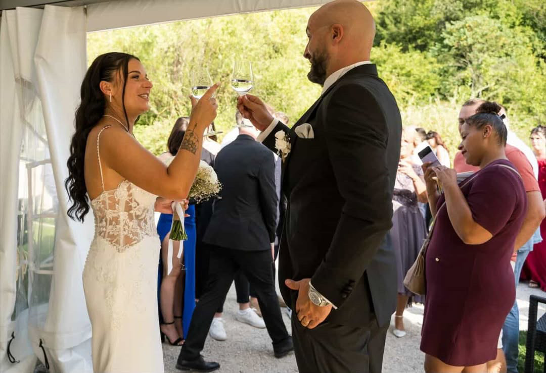 Jenna & Kévin m’ont contactée en fin d’année 2023 pour l’organisation du plus beau jour de leur vie en 2025. Ils souhaitaient un accompagnement complet de A à Z. J’ai donc géré la recherche du lieu, des prestataires, la décoration, la mise en place et la coordination. Après un rendez-vous pour établir leur cahier des charges et comprendre leurs envies, le lieu s’est rapidement imposé comme une évidence. Ils voulaient un bel espace de réception, avec un extérieur qui se prête à une cérémonie laïque, un repli en cas de mauvais temps et idéalement du couchage sur place. Le tout dans un périmètre de 45 minutes de chez eux. Le Moulin de la Mangue était parfait. Il cochait toutes les cases et après la visite, ce fut un véritable coup de cœur pour eux. L’organisation de leur mariage en Haute-Saône était donc lancée !